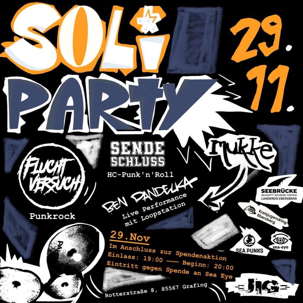 Im JiG steppt schon bald wieder der Bär!! ? Am 29.11.25 findet nach der Spendenaktion mit der @seebruecke_landkreis_ebe eine Soliparty mit @fluchtversuchband, @sendeschluss_official und @benpandelka statt! @_seapunks sind ebenfalls mit einem Bus voller Merch am Start! Einlass: 19 UhrBeginn: 20 Uhr Kommt alle vorbei und unterstützt @seaeye_org mit euer Eintrittsspende!